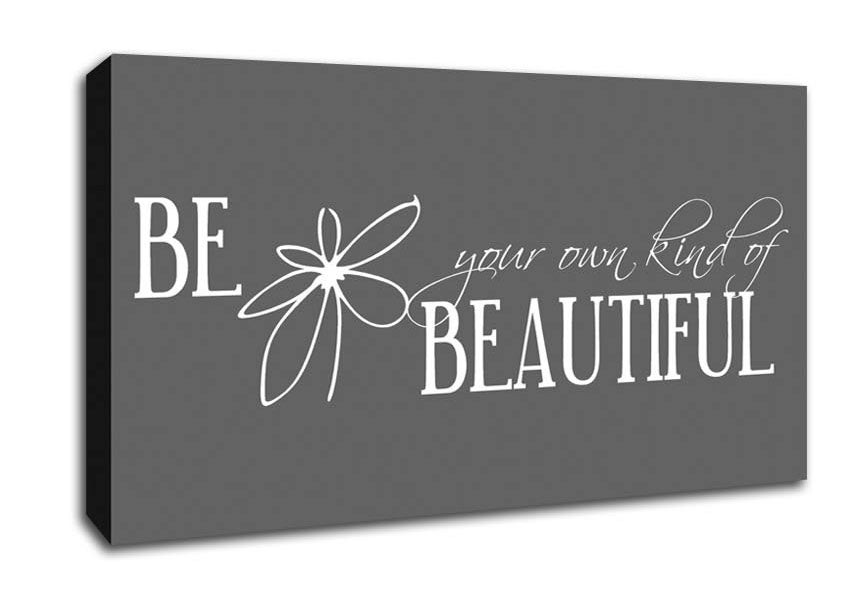 Be Your Own Kind Grey Wide Canvas Print handmade in the UK. Stretched over a 2 inch thick wooden box frame, ready to hang on your wall.