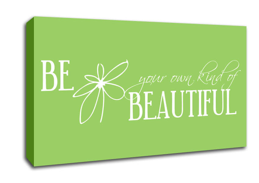 Be Your Own Kind Lime Green Wide Canvas Print handmade in the UK. Stretched over a 2 inch thick wooden box frame, ready to hang on your wall.