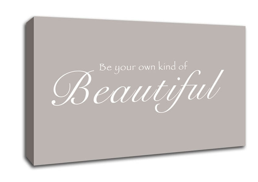 Be Your Own Kind Of Beautiful Beige Wide Canvas Print handmade in the UK. Stretched over a 2 inch thick wooden box frame, ready to hang on your wall.