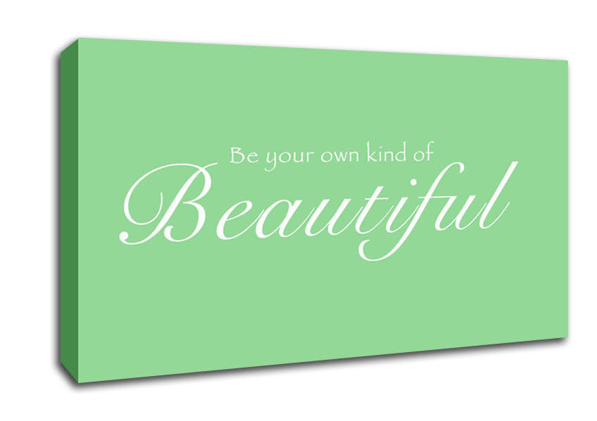 Be Your Own Kind Of Beautiful Green Wide Canvas Print handmade in the UK. Stretched over a 2 inch thick wooden box frame, ready to hang on your wall.