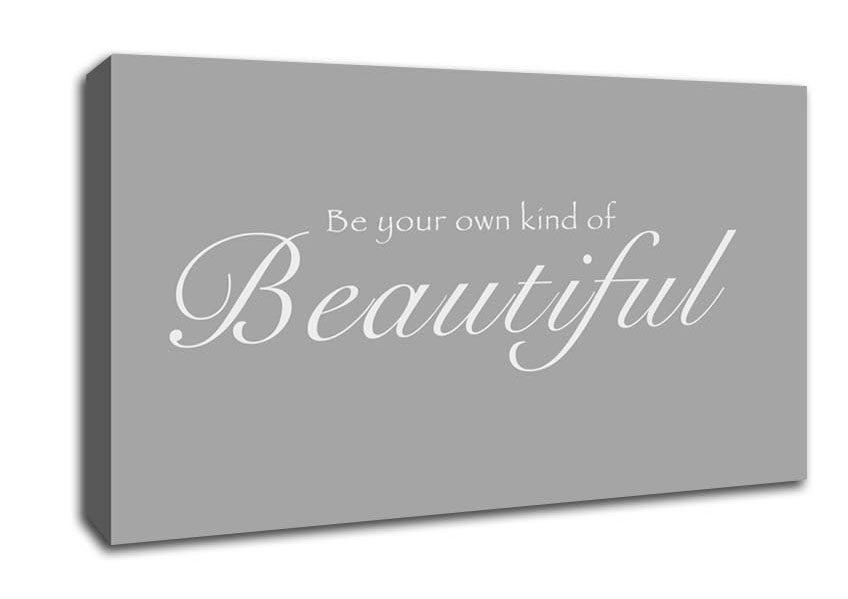 Be Your Own Kind Of Beautiful Grey White Wide Canvas Print handmade in the UK. Stretched over a 2 inch thick wooden box frame, ready to hang on your wall.