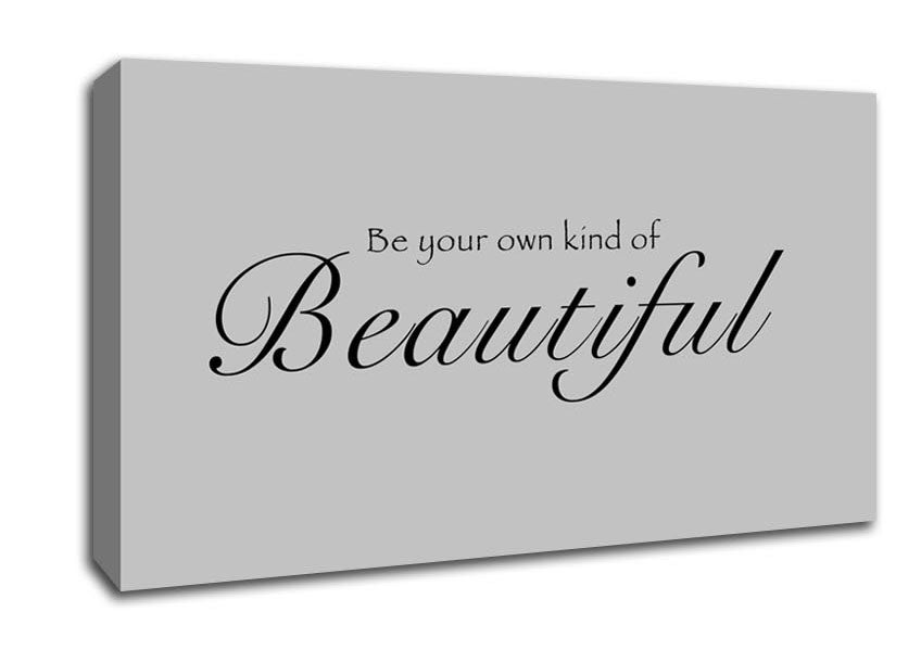 Be Your Own Kind Of Beautiful Grey Wide Canvas Print handmade in the UK. Stretched over a 2 inch thick wooden box frame, ready to hang on your wall.