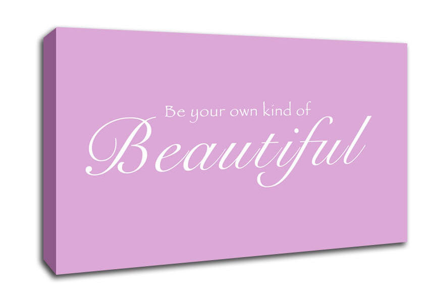 Be Your Own Kind Of Beautiful Pink Wide Canvas Print handmade in the UK. Stretched over a 2 inch thick wooden box frame, ready to hang on your wall.