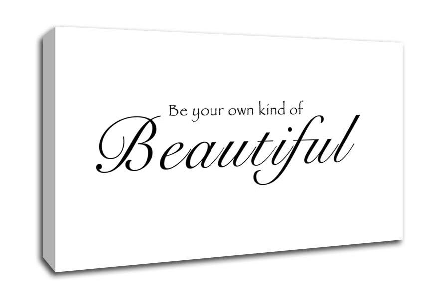 Be Your Own Kind Of Beautiful White Wide Canvas Print handmade in the UK. Stretched over a 2 inch thick wooden box frame, ready to hang on your wall.