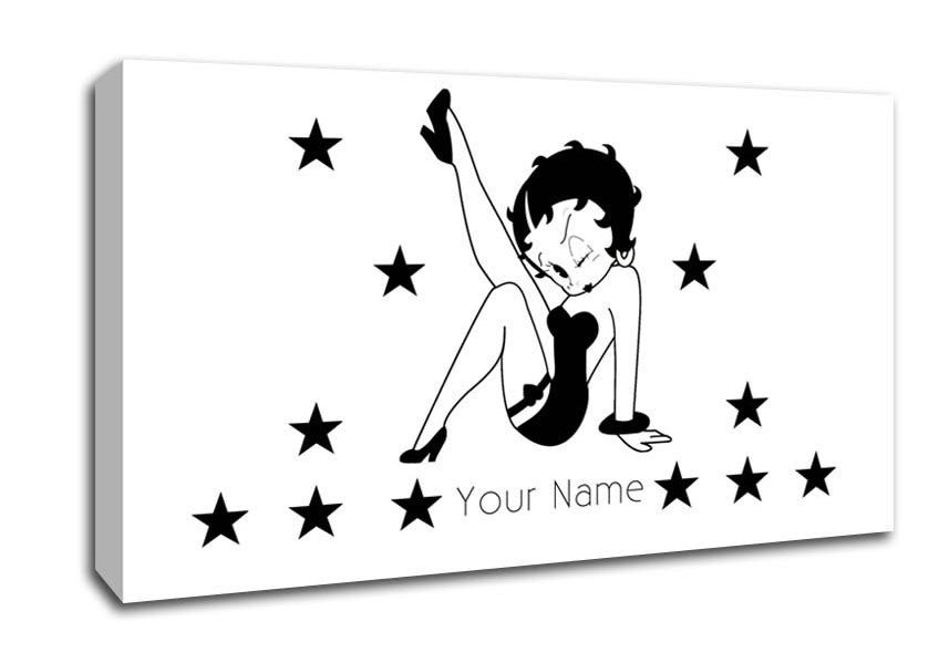 Betty Boop Your Name Stars White Wide Canvas Print handmade in the UK. Stretched over a 2 inch thick wooden box frame, ready to hang on your wall.