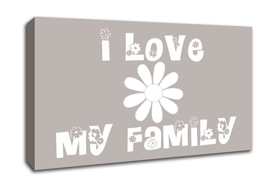 Boys room Quote I Love My Family Beige Wide Canvas Print handmade in the UK. Stretched over a 2 inch thick wooden box frame, ready to hang on your wall.