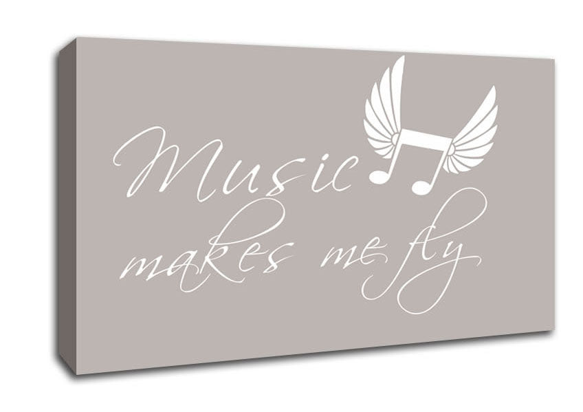 Boys room Quote Music Makes Me Fly Beige Wide Canvas Print handmade in the UK. Stretched over a 2 inch thick wooden box frame, ready to hang on your wall.