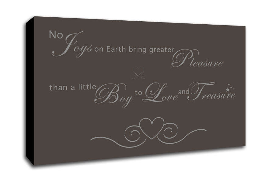 Boys Room Quote No Joys On Earth Bring Pleasure Chocolate Wide Canvas Print handmade in the UK. Stretched over a 2 inch thick wooden box frame, ready to hang on your wall.