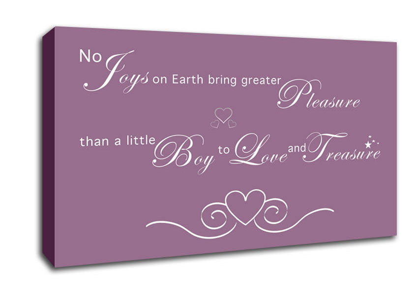 Boys Room Quote No Joys On Earth Bring Pleasure Dusty Pink Wide Canvas Print handmade in the UK. Stretched over a 2 inch thick wooden box frame, ready to hang on your wall.