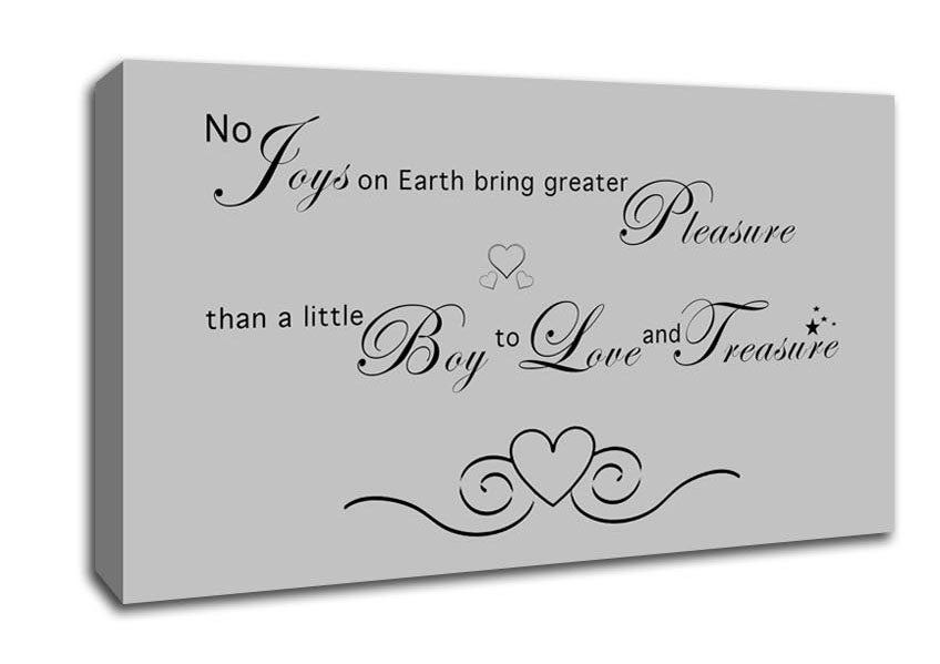 Boys Room Quote No Joys On Earth Bring Pleasure Grey Wide Canvas Print handmade in the UK. Stretched over a 2 inch thick wooden box frame, ready to hang on your wall.