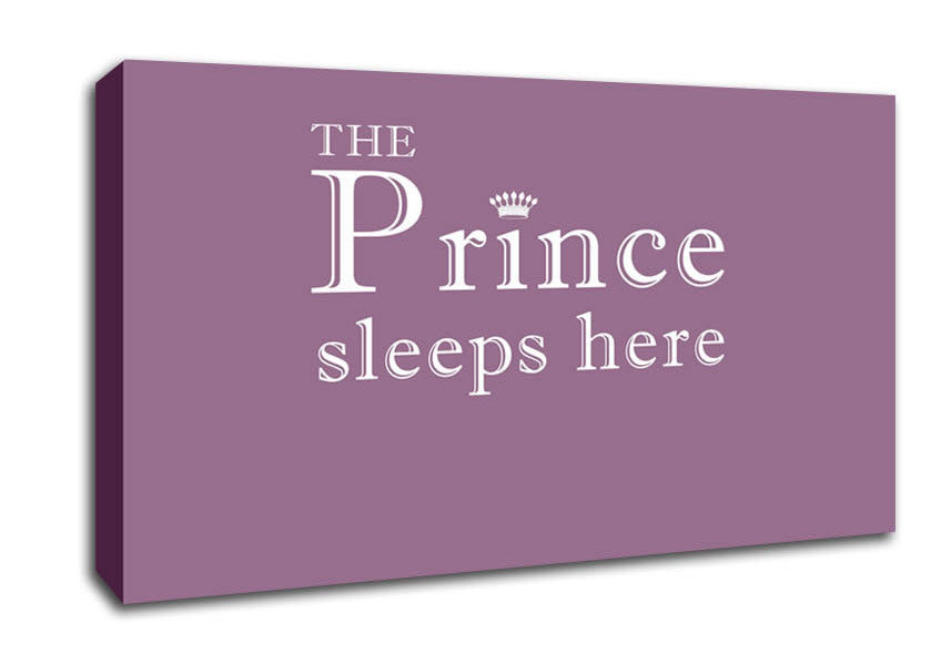 Boys room Quote The Prince Sleeps Here Dusty Pink Wide Canvas Print handmade in the UK. Stretched over a 2 inch thick wooden box frame, ready to hang on your wall.