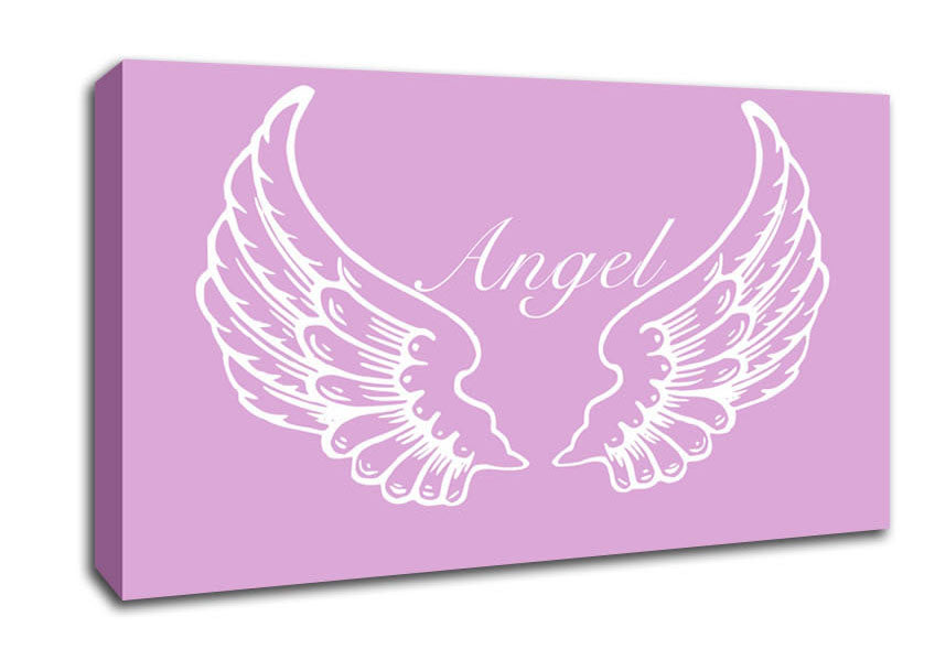 Nursery Quote Angel Wings Pink Wide Canvas Print handmade in the UK. Stretched over a 2 inch thick wooden box frame, ready to hang on your wall.