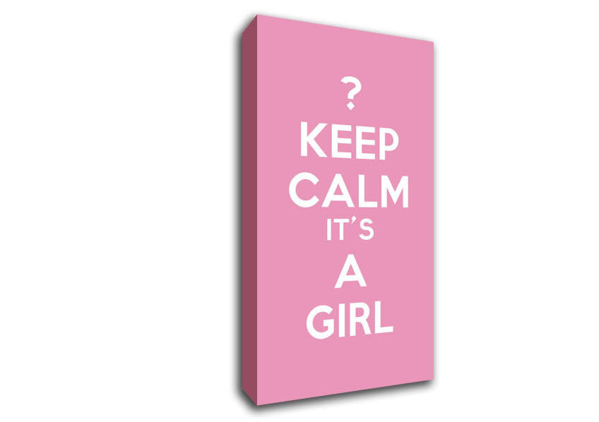 Nursery Quote Keep Calm Girl Pink Wide Canvas Print handmade in the UK. Stretched over a 2 inch thick wooden box frame, ready to hang on your wall.