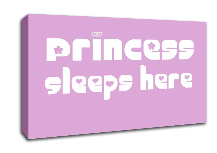 Nursery Quote Princess sleeps 2 Pink Wide Canvas Print handmade in the UK. Stretched over a 2 inch thick wooden box frame, ready to hang on your wall.