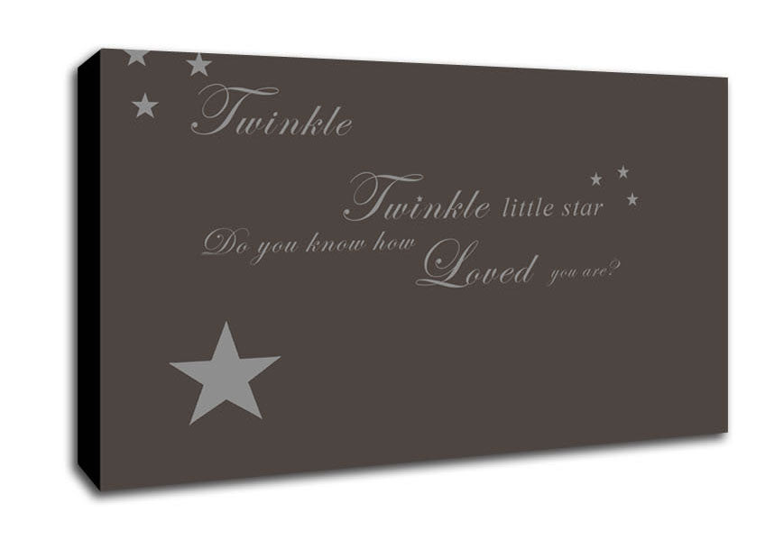 Nursery Quote Twinkle Twinkle Little Star 1 Chocolate Wide Canvas Print handmade in the UK. Stretched over a 2 inch thick wooden box frame, ready to hang on your wall.