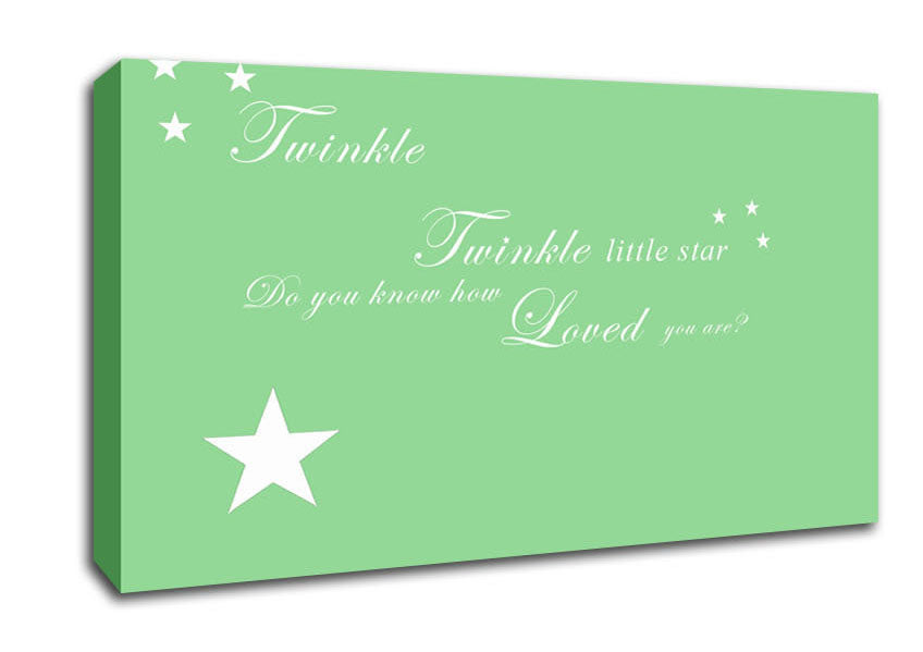Nursery Quote Twinkle Twinkle Little Star 1 Green Wide Canvas Print handmade in the UK. Stretched over a 2 inch thick wooden box frame, ready to hang on your wall.