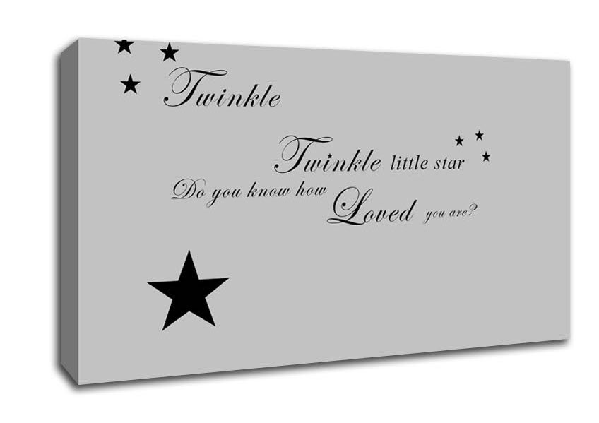 Nursery Quote Twinkle Twinkle Little Star 1 Grey Wide Canvas Print handmade in the UK. Stretched over a 2 inch thick wooden box frame, ready to hang on your wall.