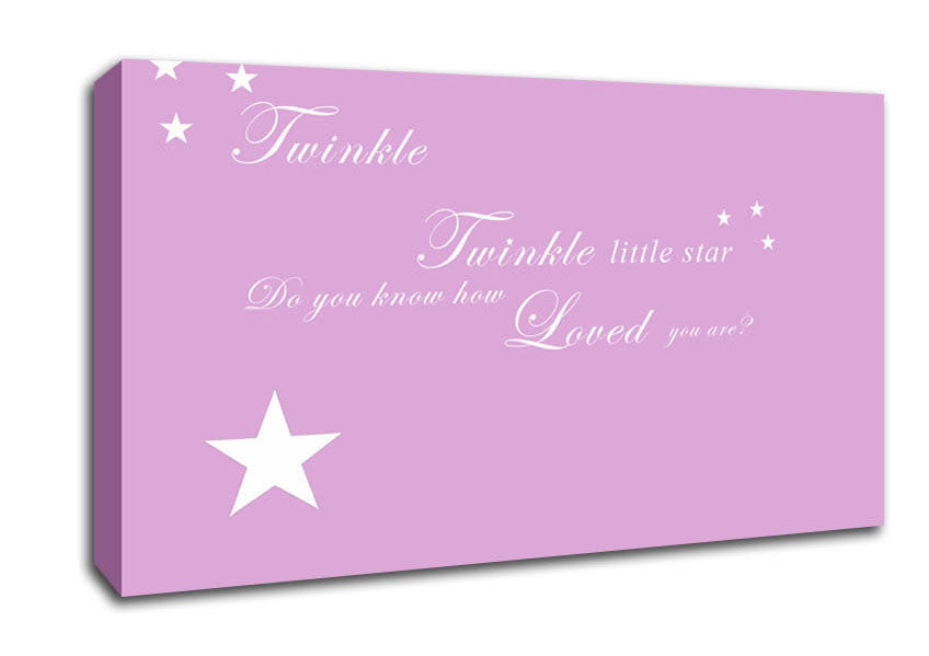 Nursery Quote Twinkle Twinkle Little Star 1 Pink Wide Canvas Print handmade in the UK. Stretched over a 2 inch thick wooden box frame, ready to hang on your wall.