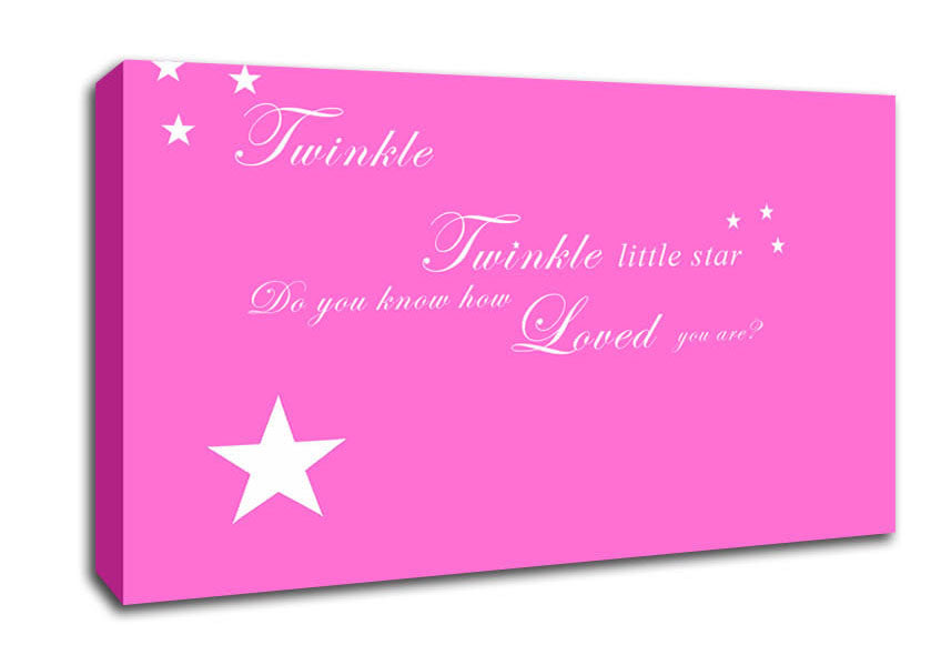Nursery Quote Twinkle Twinkle Little Star 1 Vivid Pink Wide Canvas Print handmade in the UK. Stretched over a 2 inch thick wooden box frame, ready to hang on your wall.