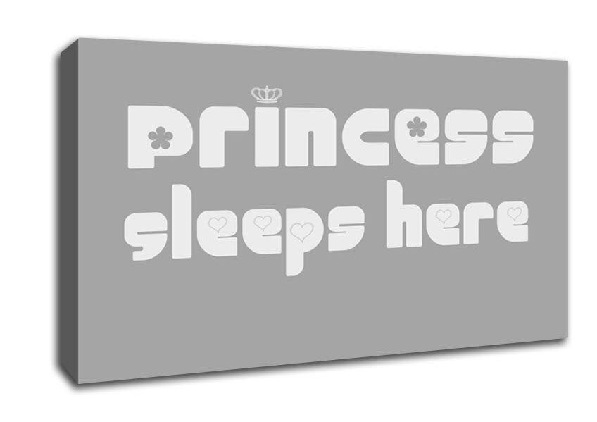Princesss Sleeps Here 2 Grey White Wide Canvas Print handmade in the UK. Stretched over a 2 inch thick wooden box frame, ready to hang on your wall.