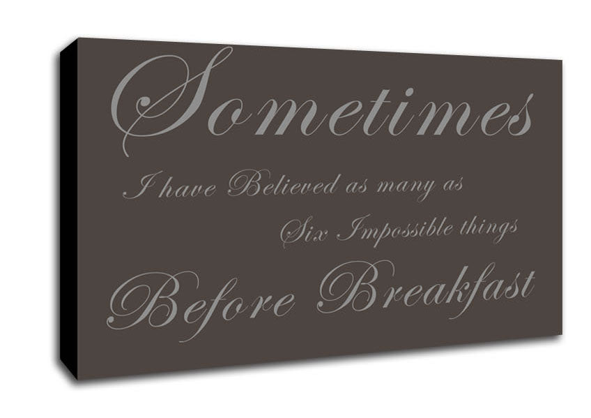 Sometimes I Have Believed As Many As Chocolate Wide Canvas Print handmade in the UK. Stretched over a 2 inch thick wooden box frame, ready to hang on your wall.