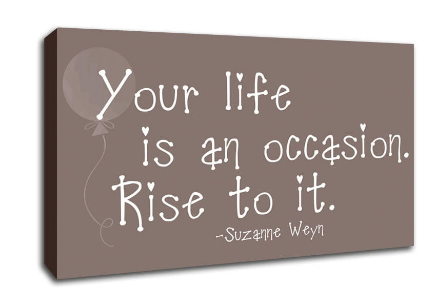 Suzanne Weyn Your Life Is An Occasion Beige Wide Canvas Print handmade in the UK. Stretched over a 2 inch thick wooden box frame, ready to hang on your wall.