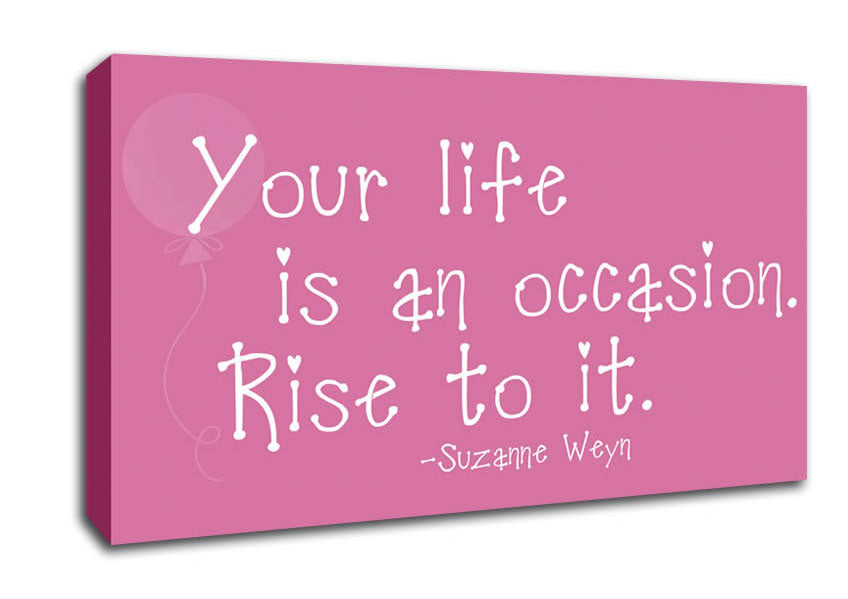 Suzanne Weyn Your Life Is An Occasion Pink Wide Canvas Print handmade in the UK. Stretched over a 2 inch thick wooden box frame, ready to hang on your wall.