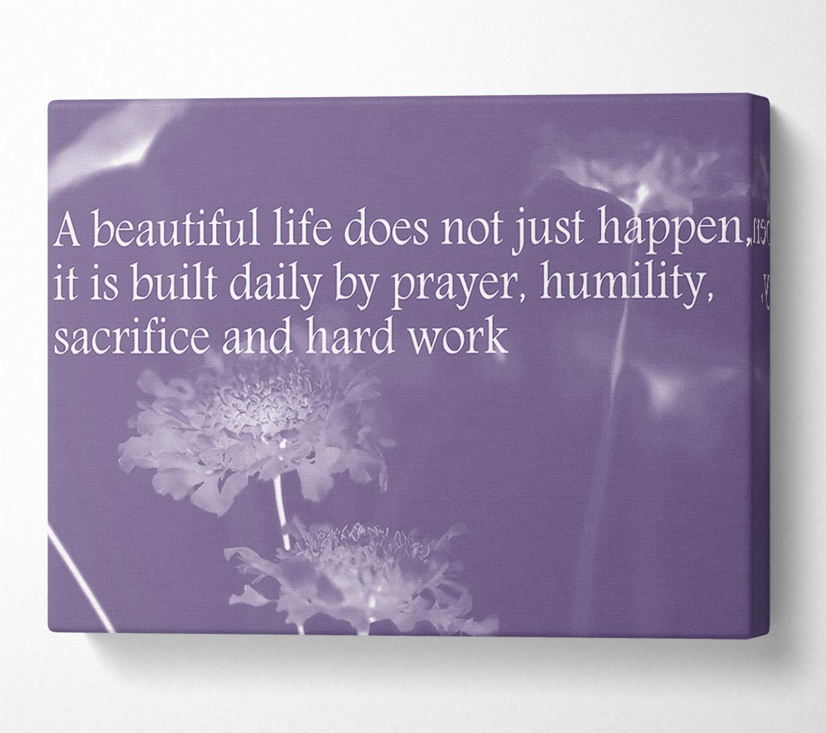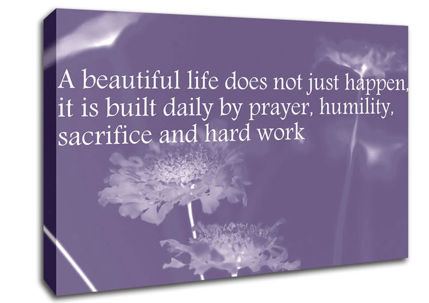 A Beautiful Life Does Not Just Happen Lilac Canvas Print handmade in the UK. Stretched over a 2 inch thick wooden box frame, ready to hang on your wall.