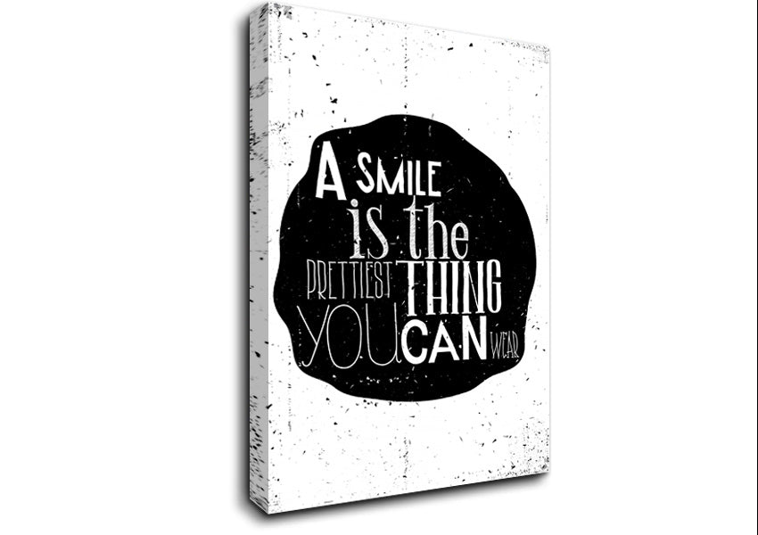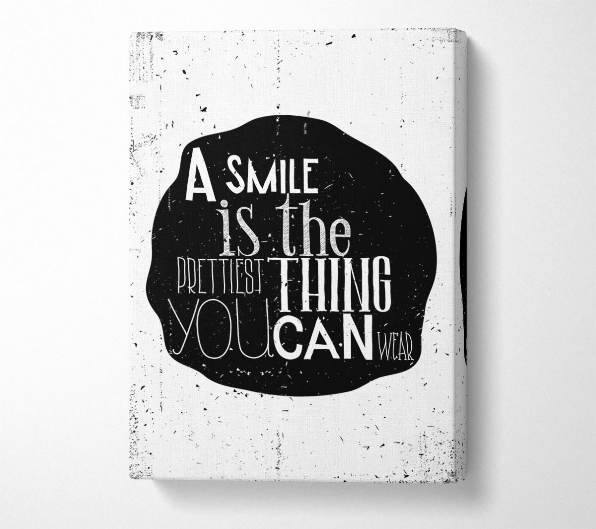 A Smile Is The Prettiest Thing Canvas Print handmade in the UK. Stretched over a 2 inch thick wooden box frame, ready to hang on your wall.