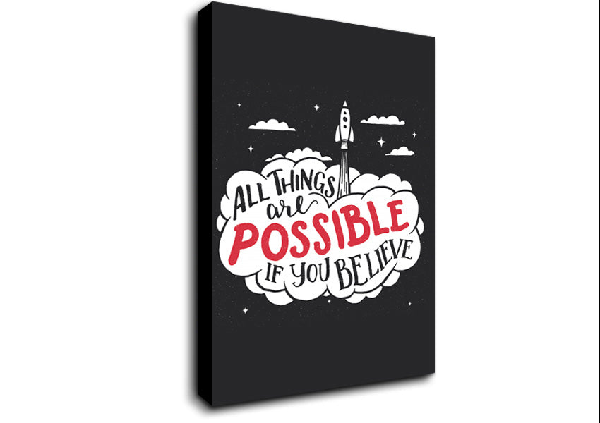 All Things Are Possible Canvas Print handmade in the UK. Stretched over a 2 inch thick wooden box frame, ready to hang on your wall.