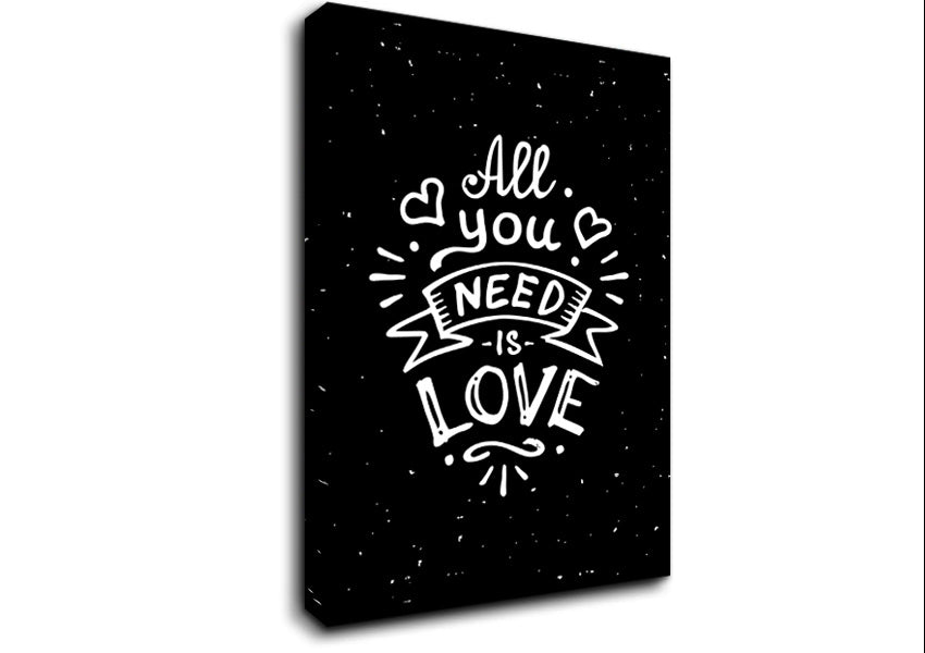 All You Need Is Love 1 Canvas Print handmade in the UK. Stretched over a 2 inch thick wooden box frame, ready to hang on your wall.