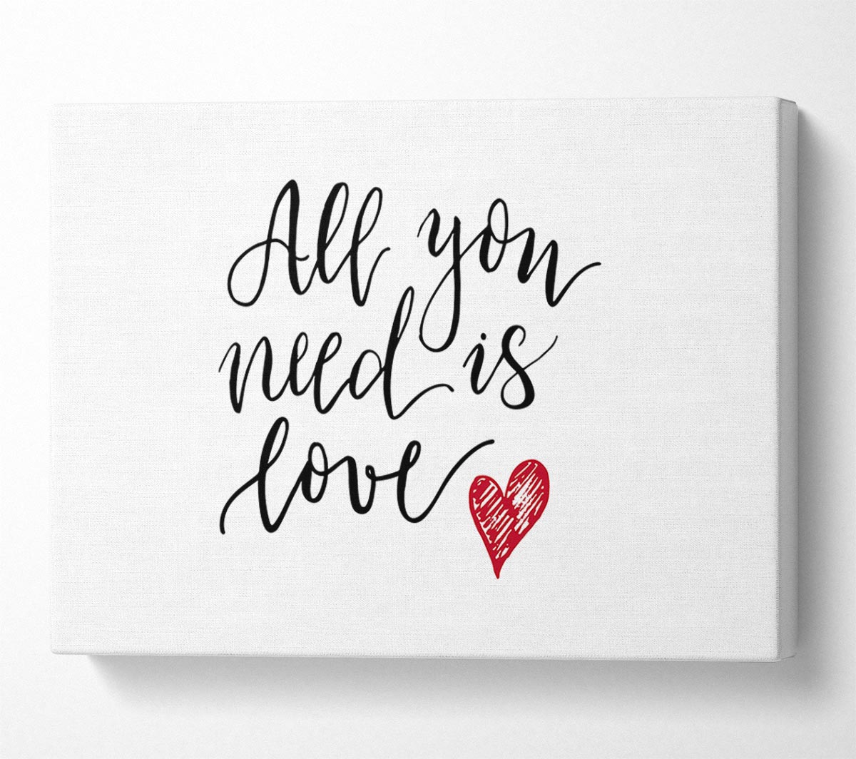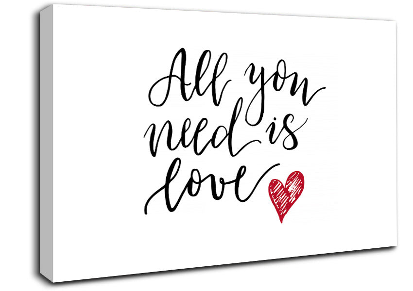 All You Need Is Love 3 Canvas Print handmade in the UK. Stretched over a 2 inch thick wooden box frame, ready to hang on your wall.