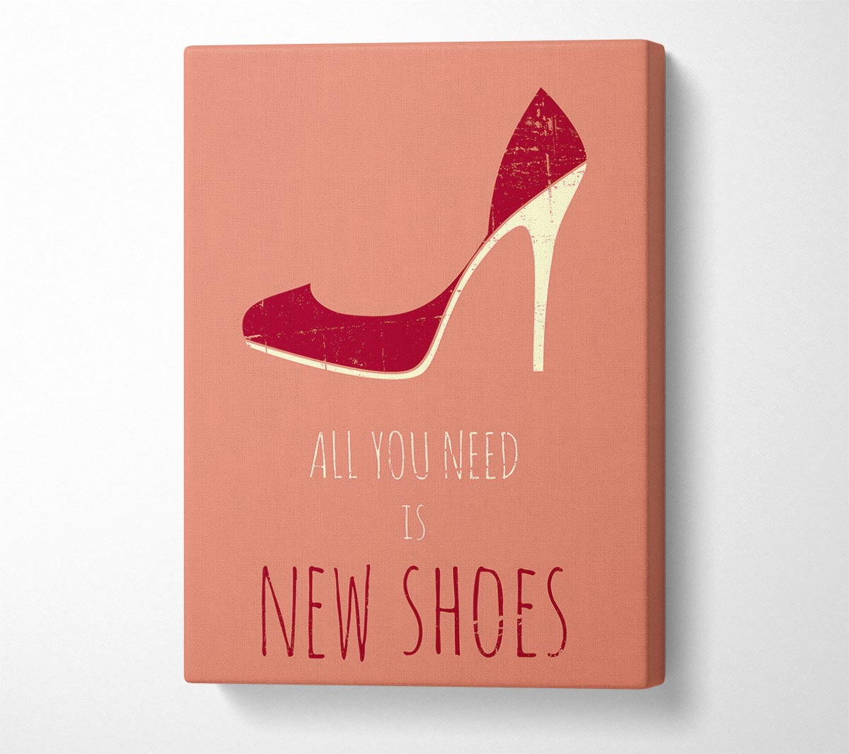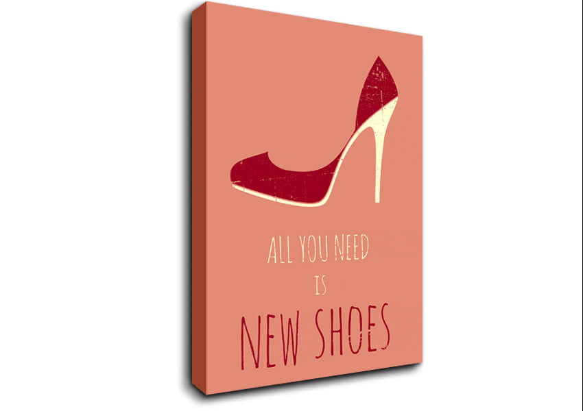 All You Need Is New Shoes Canvas Print handmade in the UK. Stretched over a 2 inch thick wooden box frame, ready to hang on your wall.