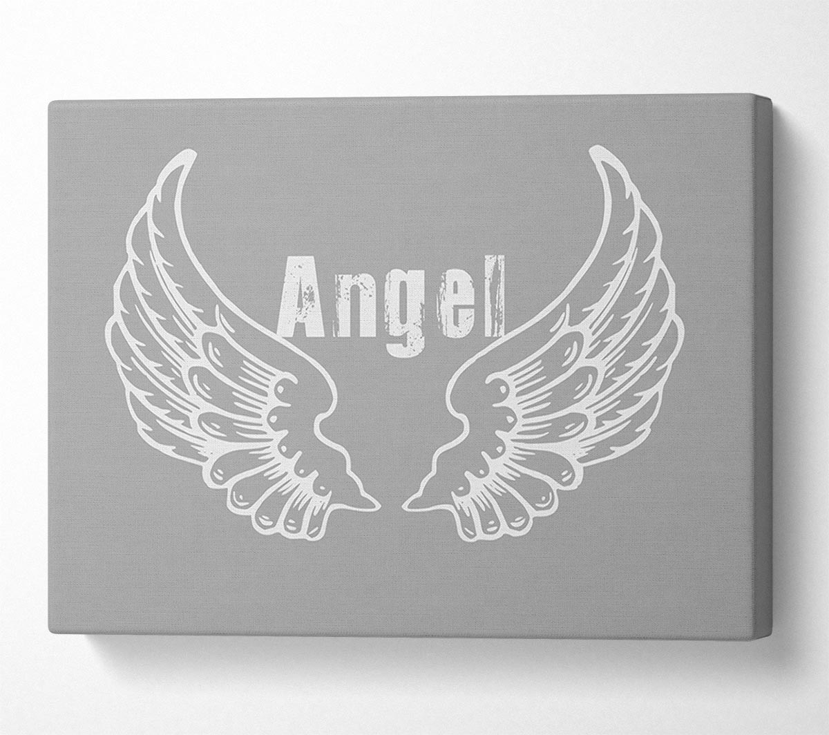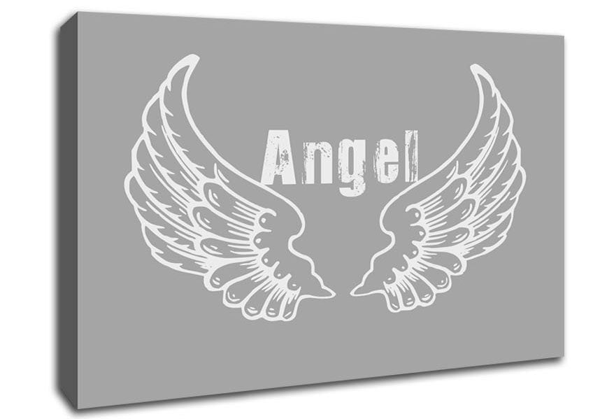 Angel Wings 2 Grey White Canvas Print handmade in the UK. Stretched over a 2 inch thick wooden box frame, ready to hang on your wall.