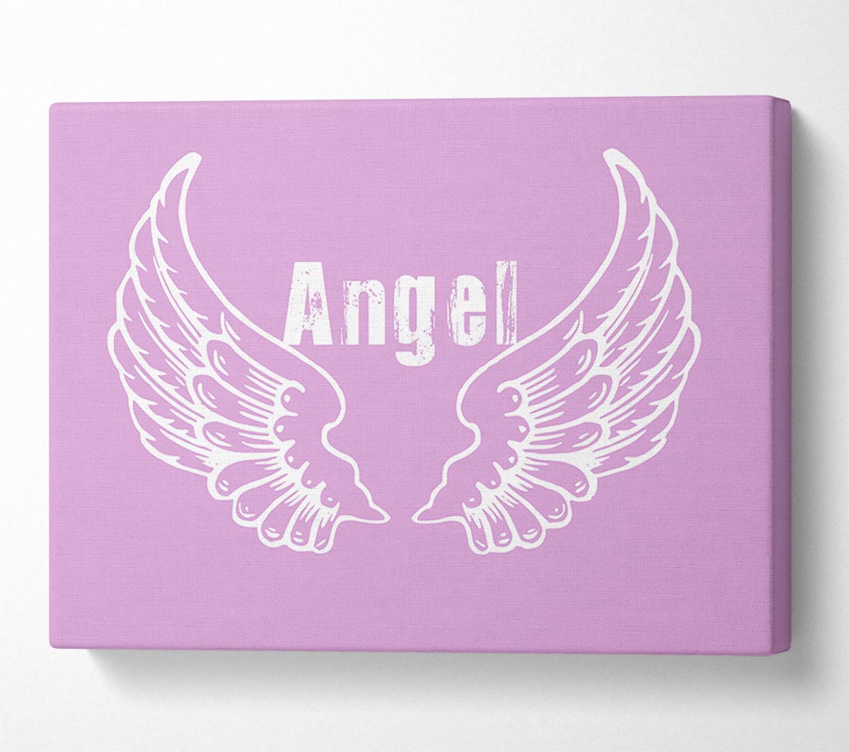 Angel Wings 2 Pink Canvas Print handmade in the UK. Stretched over a 2 inch thick wooden box frame, ready to hang on your wall.