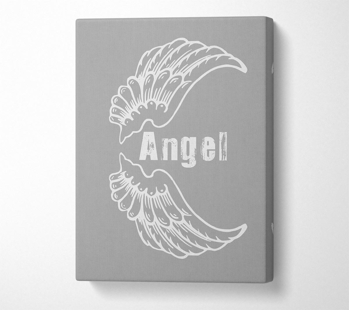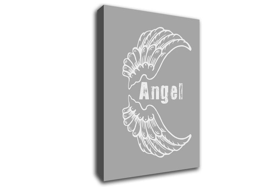 Angel Wings 3 Grey White Canvas Print handmade in the UK. Stretched over a 2 inch thick wooden box frame, ready to hang on your wall.
