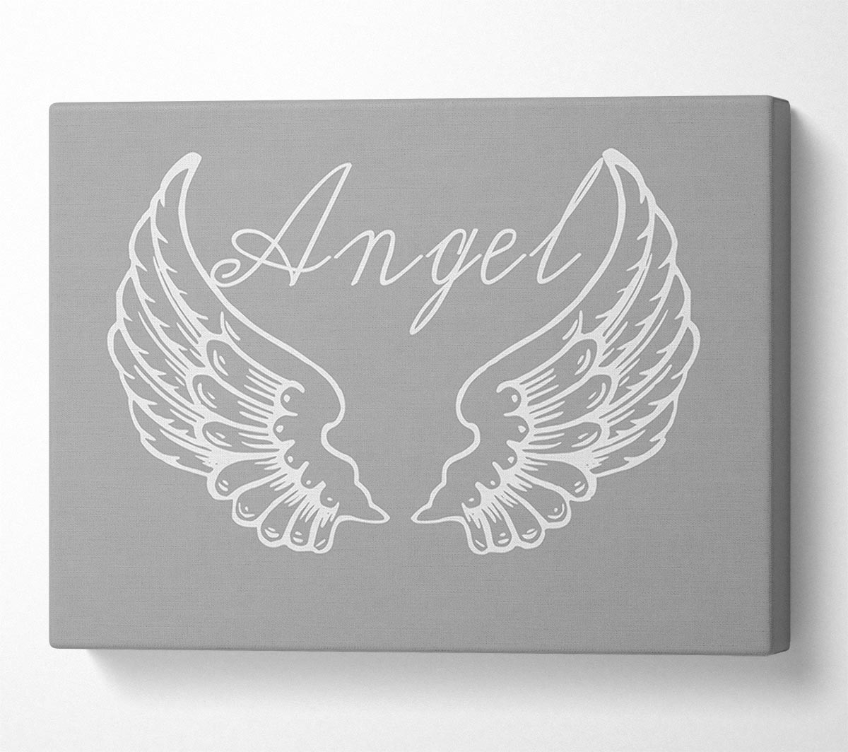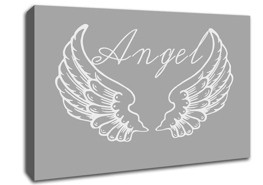 Angel Wings 4 Grey White Canvas Print handmade in the UK. Stretched over a 2 inch thick wooden box frame, ready to hang on your wall.