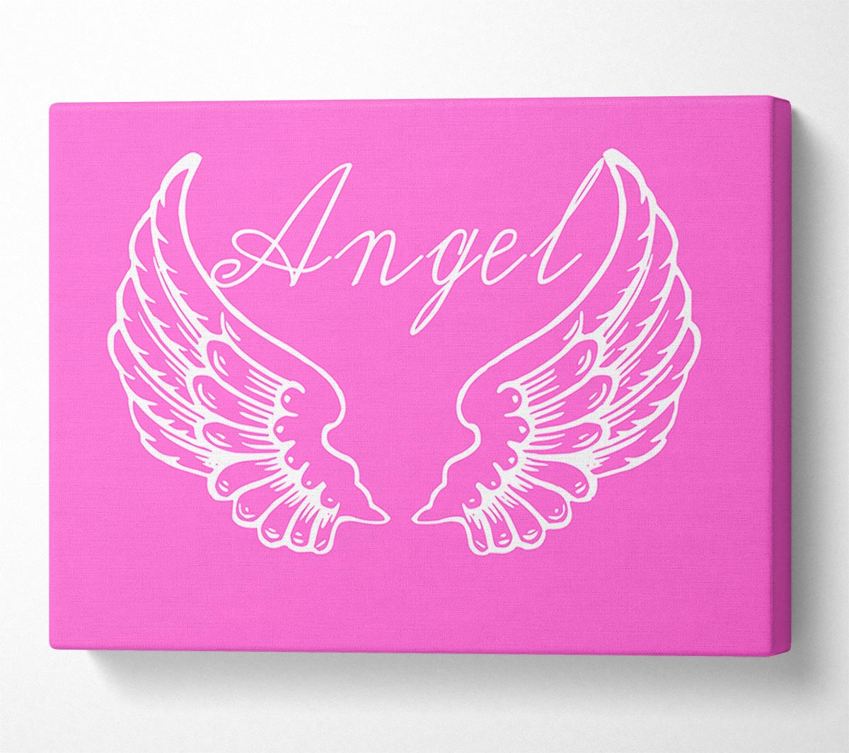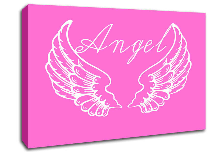 Angel Wings 4 Vivid Pink Canvas Print handmade in the UK. Stretched over a 2 inch thick wooden box frame, ready to hang on your wall.