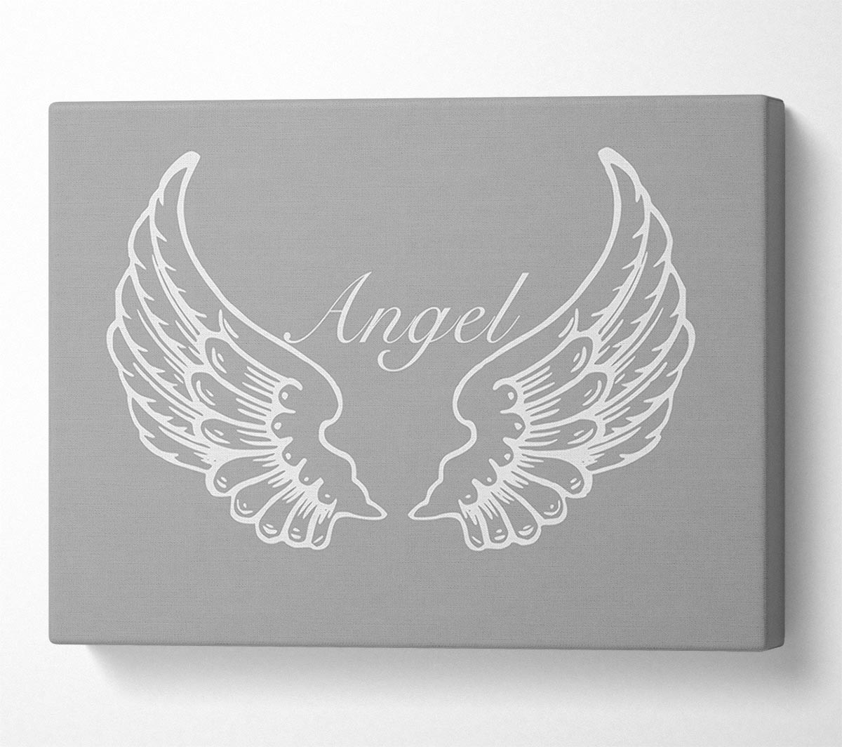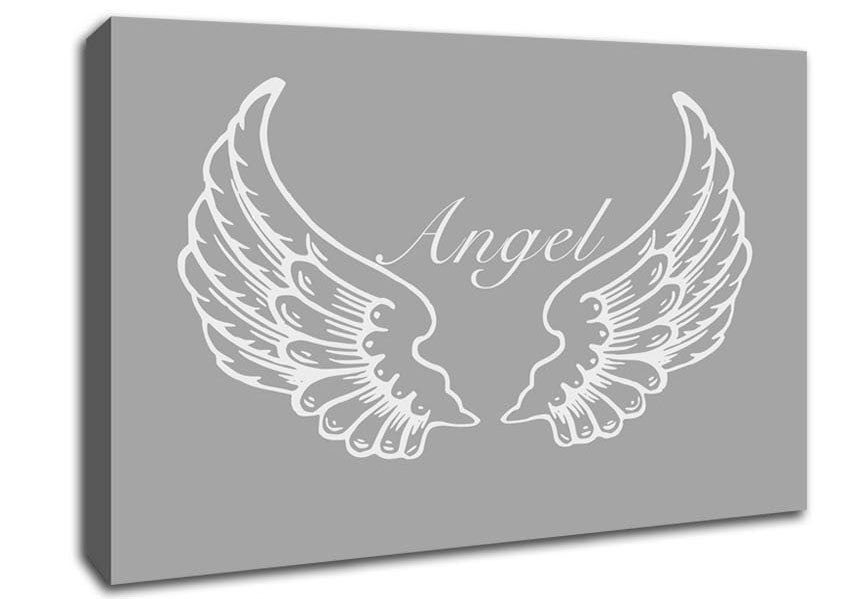 Angel Wings Grey White Canvas Print handmade in the UK. Stretched over a 2 inch thick wooden box frame, ready to hang on your wall.