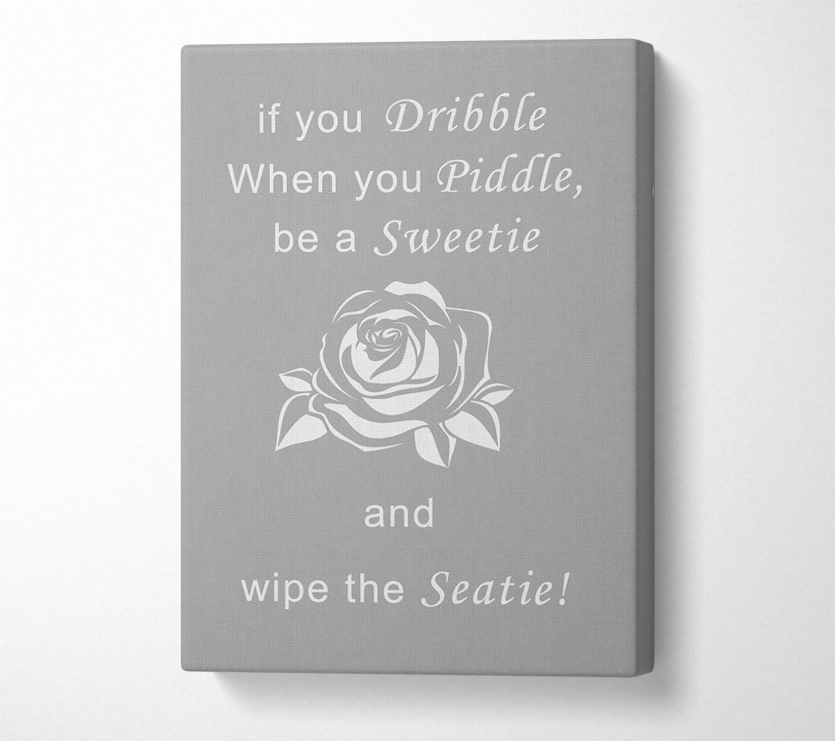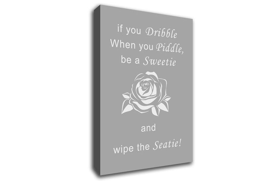 Bathroom Quote If You Dribble Grey White Canvas Print handmade in the UK. Stretched over a 2 inch thick wooden box frame, ready to hang on your wall.