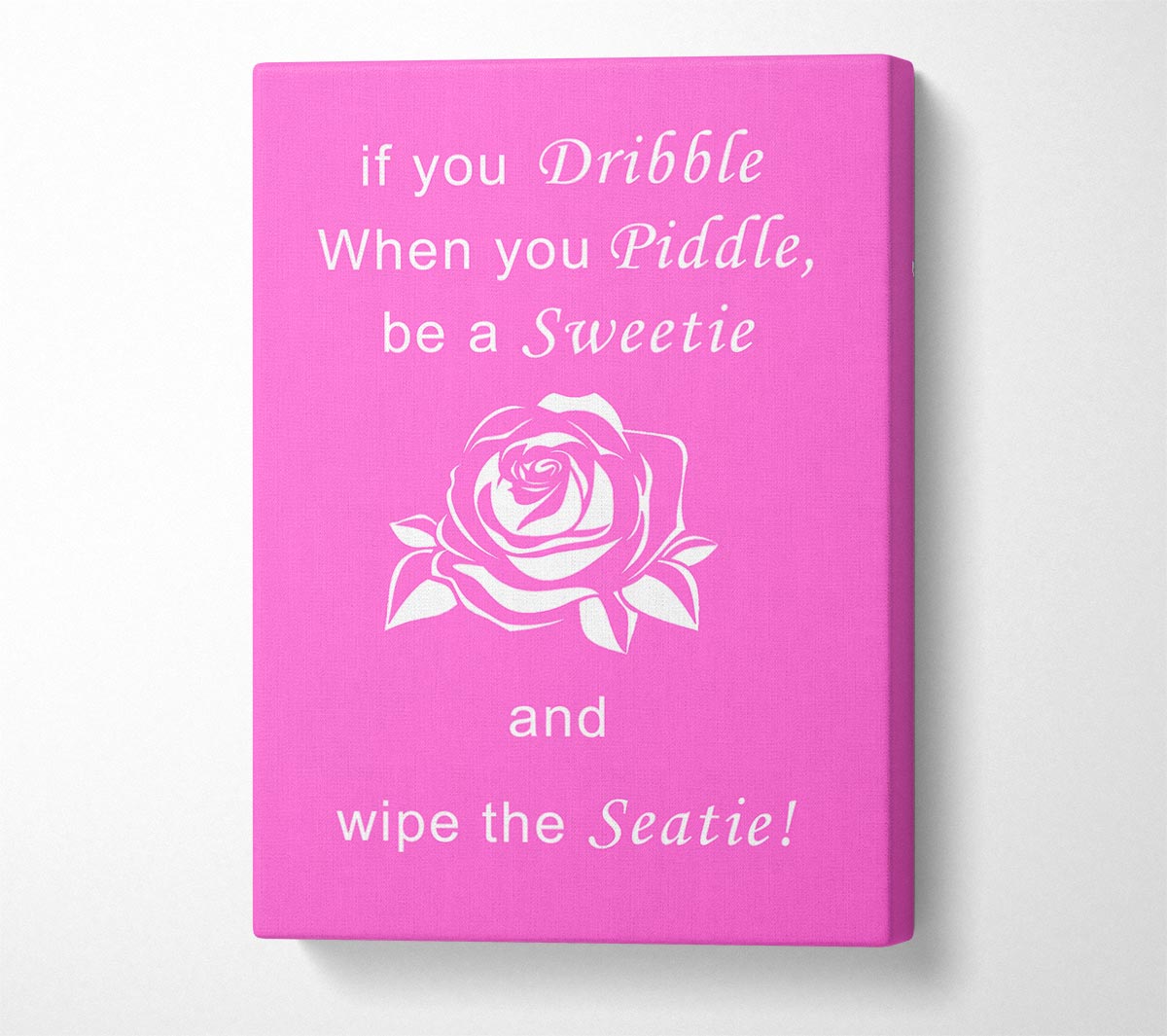Bathroom Quote If You Dribble Vivid Pink Canvas Print handmade in the UK. Stretched over a 2 inch thick wooden box frame, ready to hang on your wall.