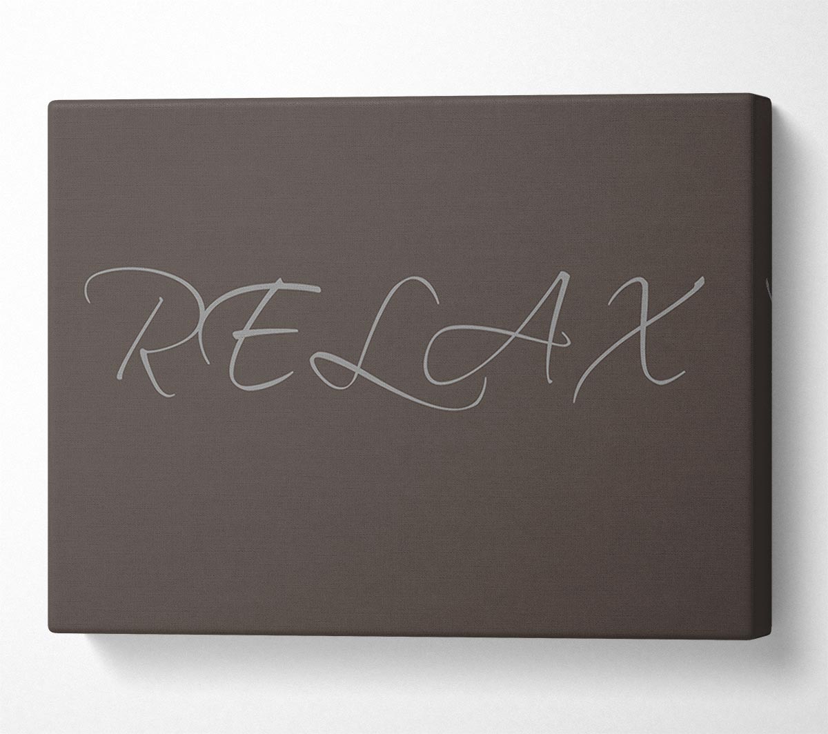 Bathroom Quote Relax Chocolate Canvas Print handmade in the UK. Stretched over a 2 inch thick wooden box frame, ready to hang on your wall.