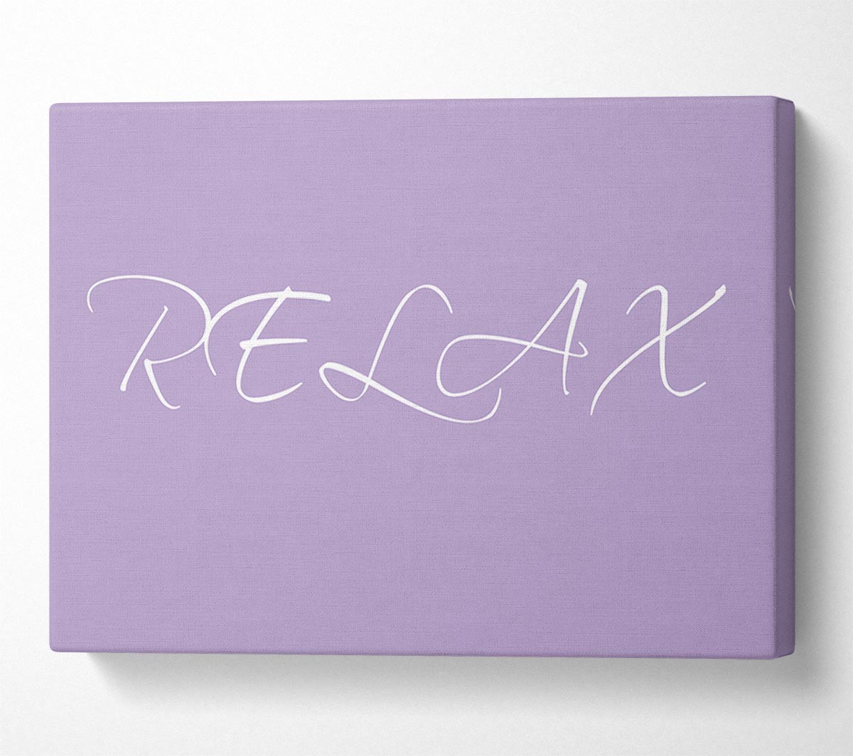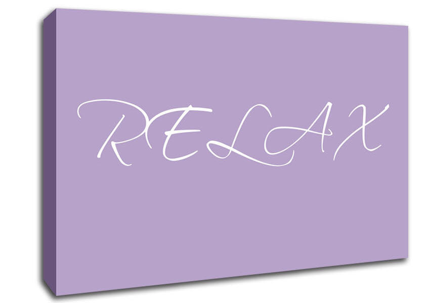 Bathroom Quote Relax Lilac Canvas Print handmade in the UK. Stretched over a 2 inch thick wooden box frame, ready to hang on your wall.