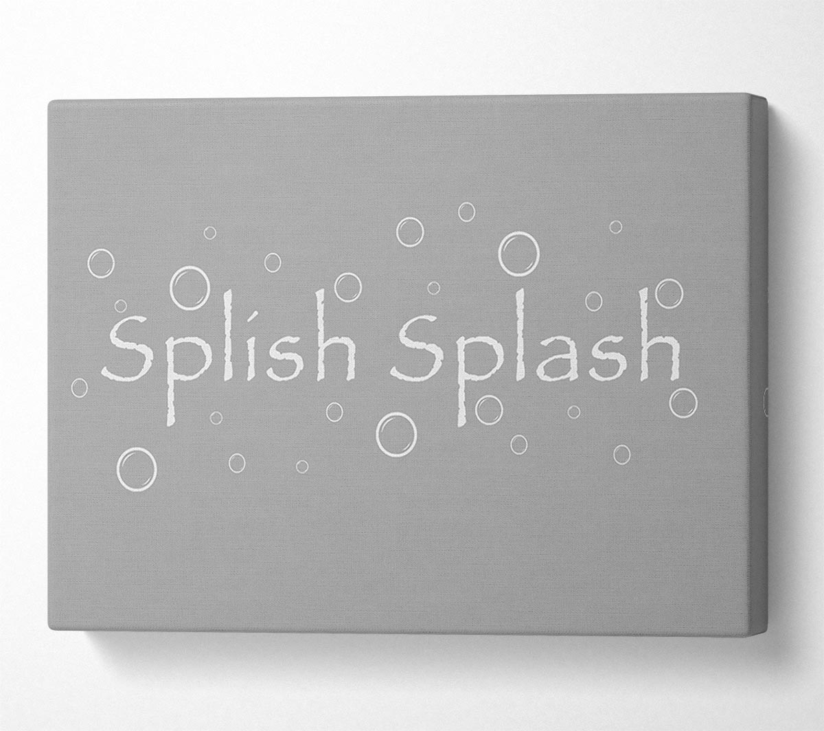 Bathroom Quote Splish Splash Bathroom Grey White Canvas Print handmade in the UK. Stretched over a 2 inch thick wooden box frame, ready to hang on your wall.