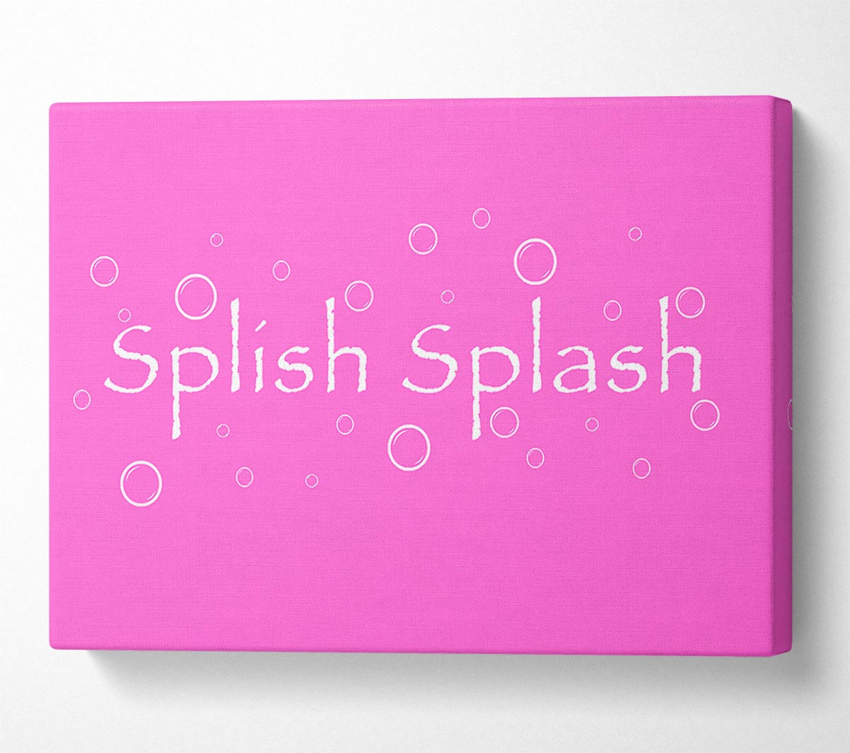 Bathroom Quote Splish Splash Bathroom Vivid Pink Canvas Print handmade in the UK. Stretched over a 2 inch thick wooden box frame, ready to hang on your wall.