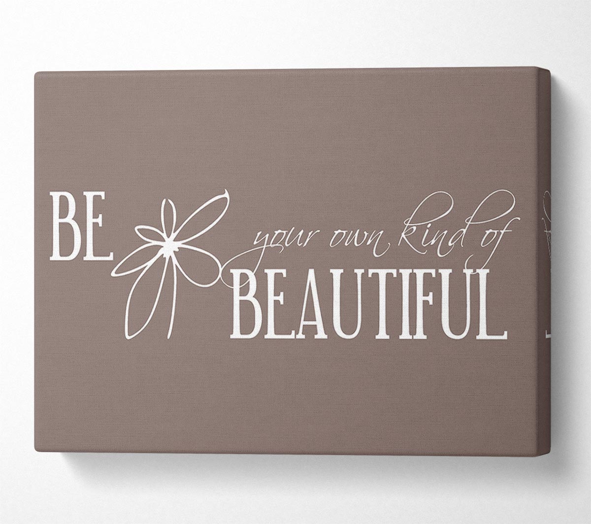 Be Your Own Kind Beige Canvas Print handmade in the UK. Stretched over a 2 inch thick wooden box frame, ready to hang on your wall.