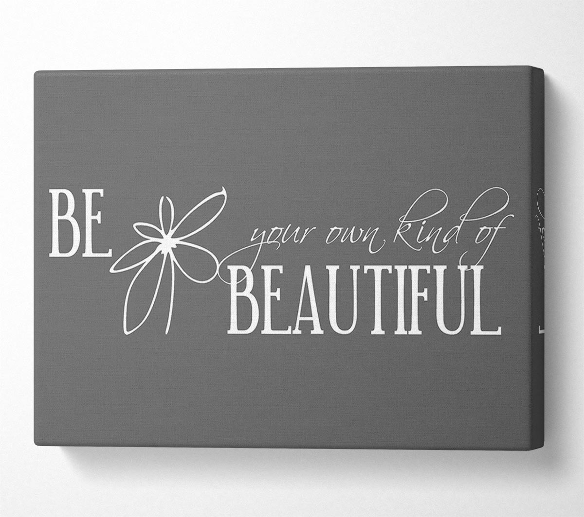 Be Your Own Kind Grey Canvas Print handmade in the UK. Stretched over a 2 inch thick wooden box frame, ready to hang on your wall.
