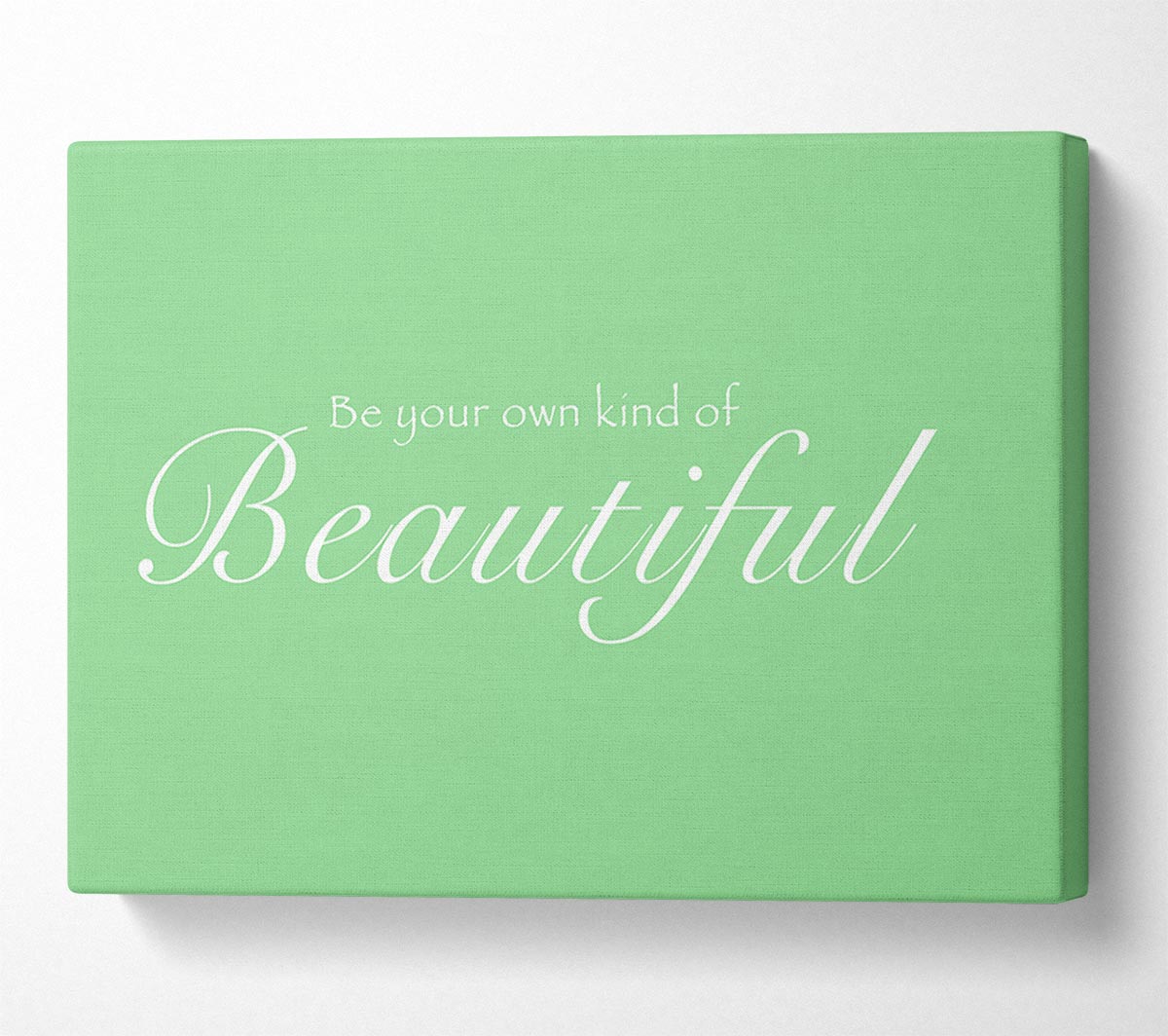 Be Your Own Kind Of Beautiful Green Canvas Print handmade in the UK. Stretched over a 2 inch thick wooden box frame, ready to hang on your wall.