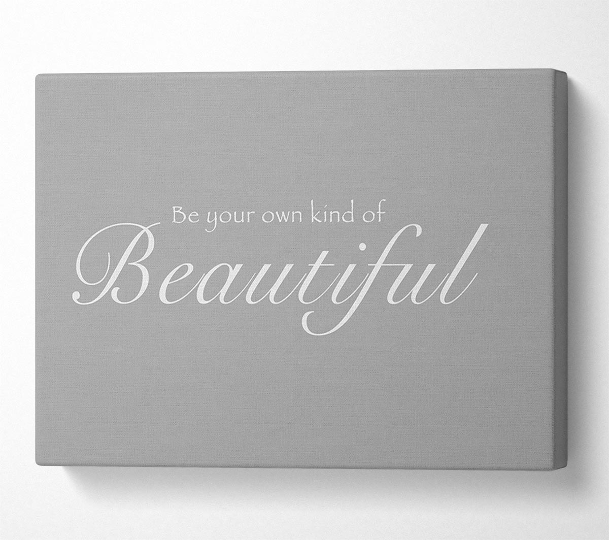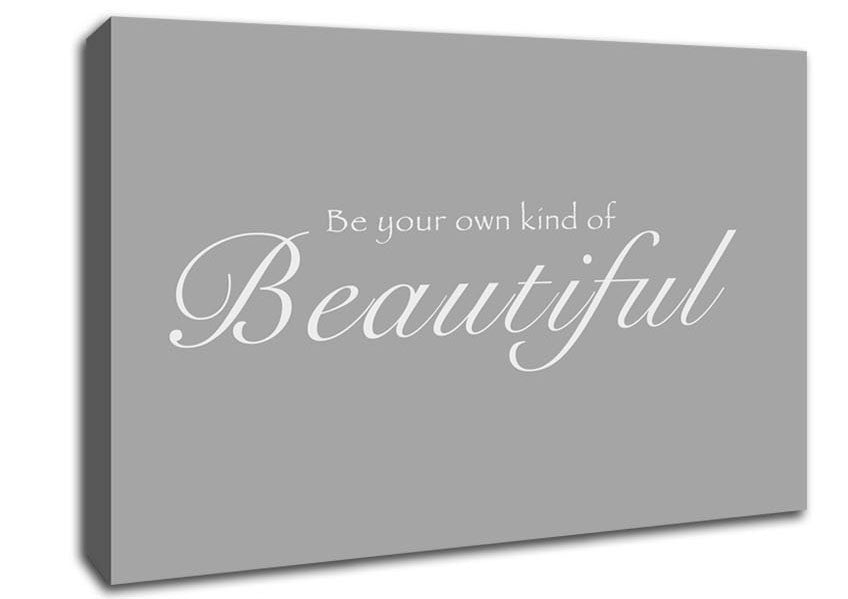 Be Your Own Kind Of Beautiful Grey White Canvas Print handmade in the UK. Stretched over a 2 inch thick wooden box frame, ready to hang on your wall.