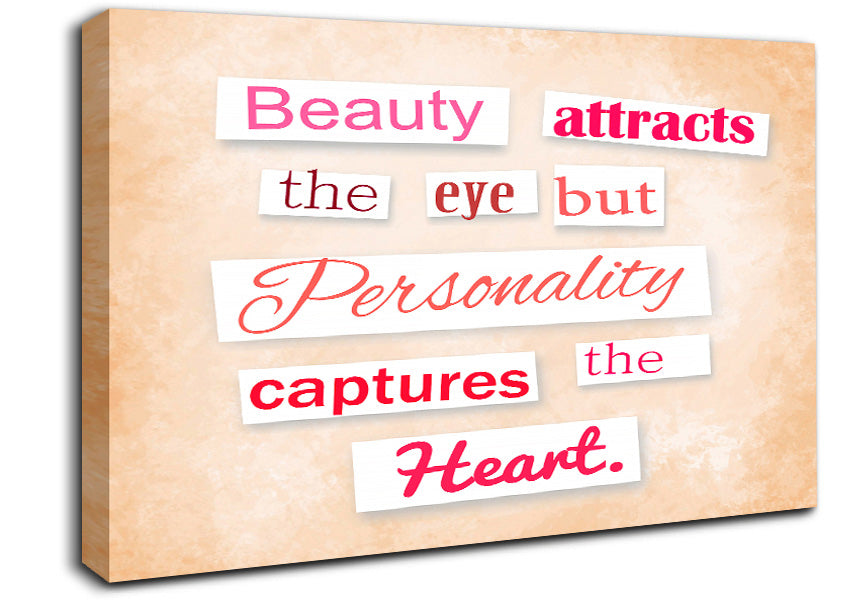 Beauty Attracts The Eye But Canvas Print handmade in the UK. Stretched over a 2 inch thick wooden box frame, ready to hang on your wall.
